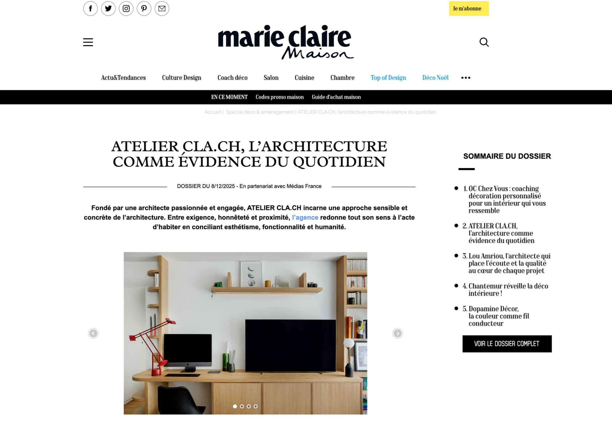 Marie Claire Maison - Dossier du 8/12/2025 - Medias France
